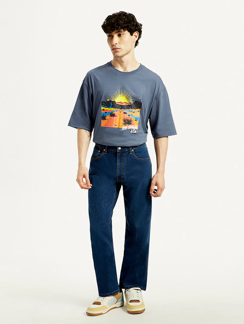 Relaxed Style Dark Indigo Mid Rise Loose Fit Jeans for Men’s Wardrobe