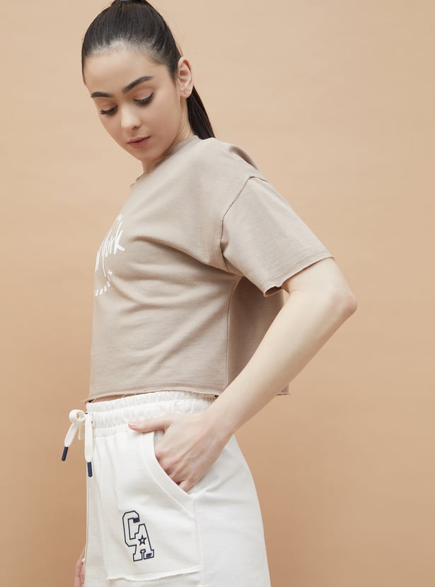 Women’s Sports Crop T Shirt Printed Athletic Top for Running Training and Workouts
